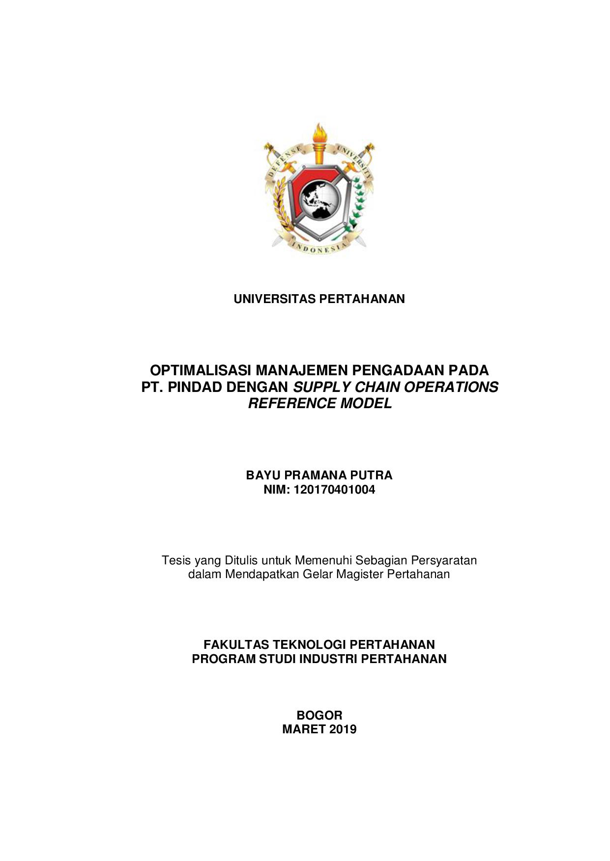 | Judul | OPTIMALISASI MANAJEMEN PENGADAAN PADA PT. PINDAD DENGAN SUPPLY CHAIN OPERATIONS REFERENCE MODEL |